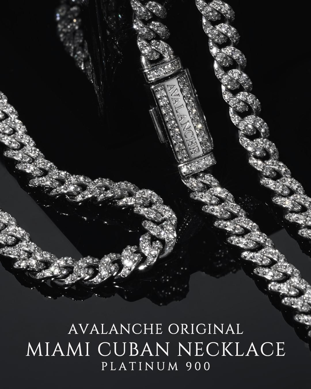 AVALANCHEの象徴、マイアミキューバンリンクス。これまで多くのご要望をいただいていた "プラチナ900" モデルが遂にリリース。幅5mmという絶妙なサイジングは、単体で着ければ洗練された印象を、重ね着けすれば更なるラグジュアリーを演出。VSランクのダイヤモンドを使用した一生モノと呼ぶにふさわしい、まさに"究極"の一本。