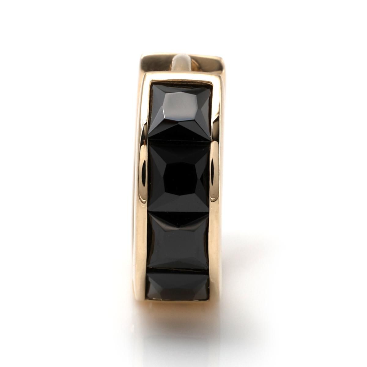 程よい大きさのフープピアスは、男女問わず着用できる万能な逸品です。ブラックジルコニアの輝きが魅力のデザインです。