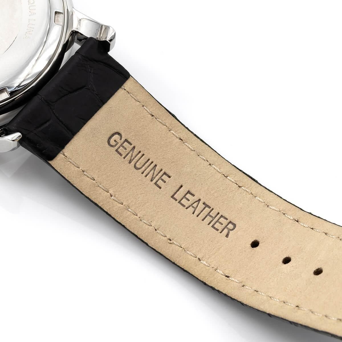 クラシックなデザインで気品あふれる "アクアルナ"。文字盤の6時の位置には、月の満ち欠けを表示するムーンフェイズ機能が備わっています。洗練された個性をもちながらも、細部にまでこだわったダイヤルやケースはスタイリッシュでファッションを選ばずに着用が可能。アクアルナは、レザーベルトとともにエレガントな手元を演出してくれます。