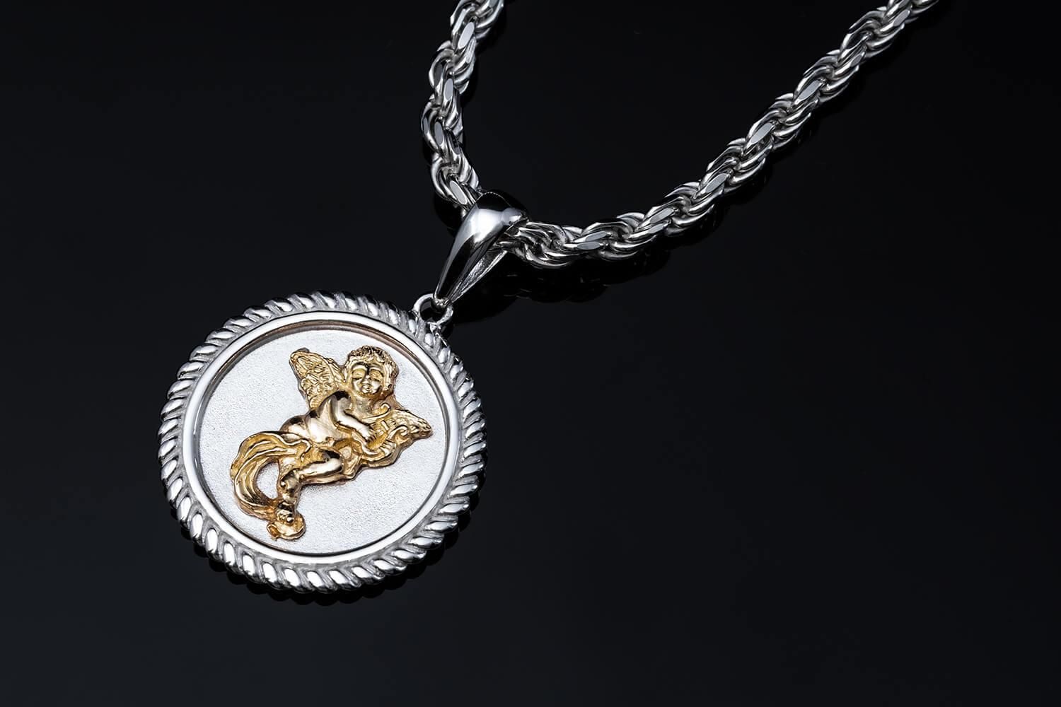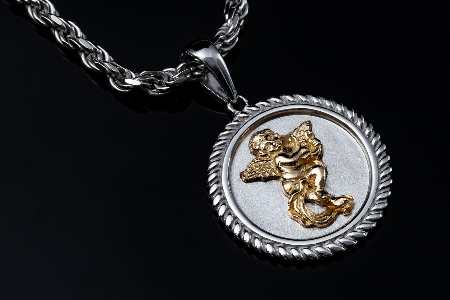 エンジェルデザインのコインをモチーフにしたペンダントです。