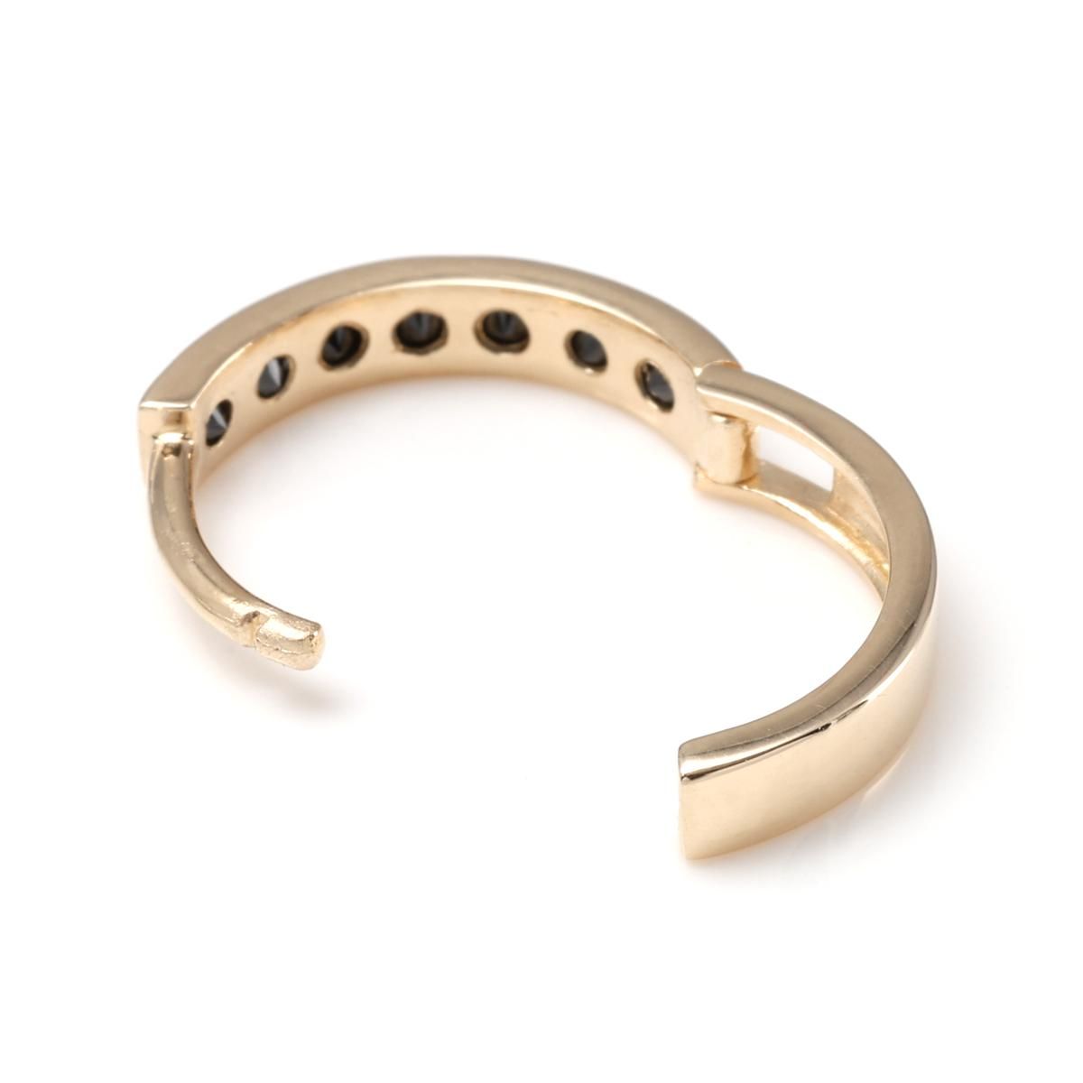 程よい大きさのフープピアスは、男女問わず着用できる万能な逸品です。ブラックジルコニアの輝きが魅力のデザインです。