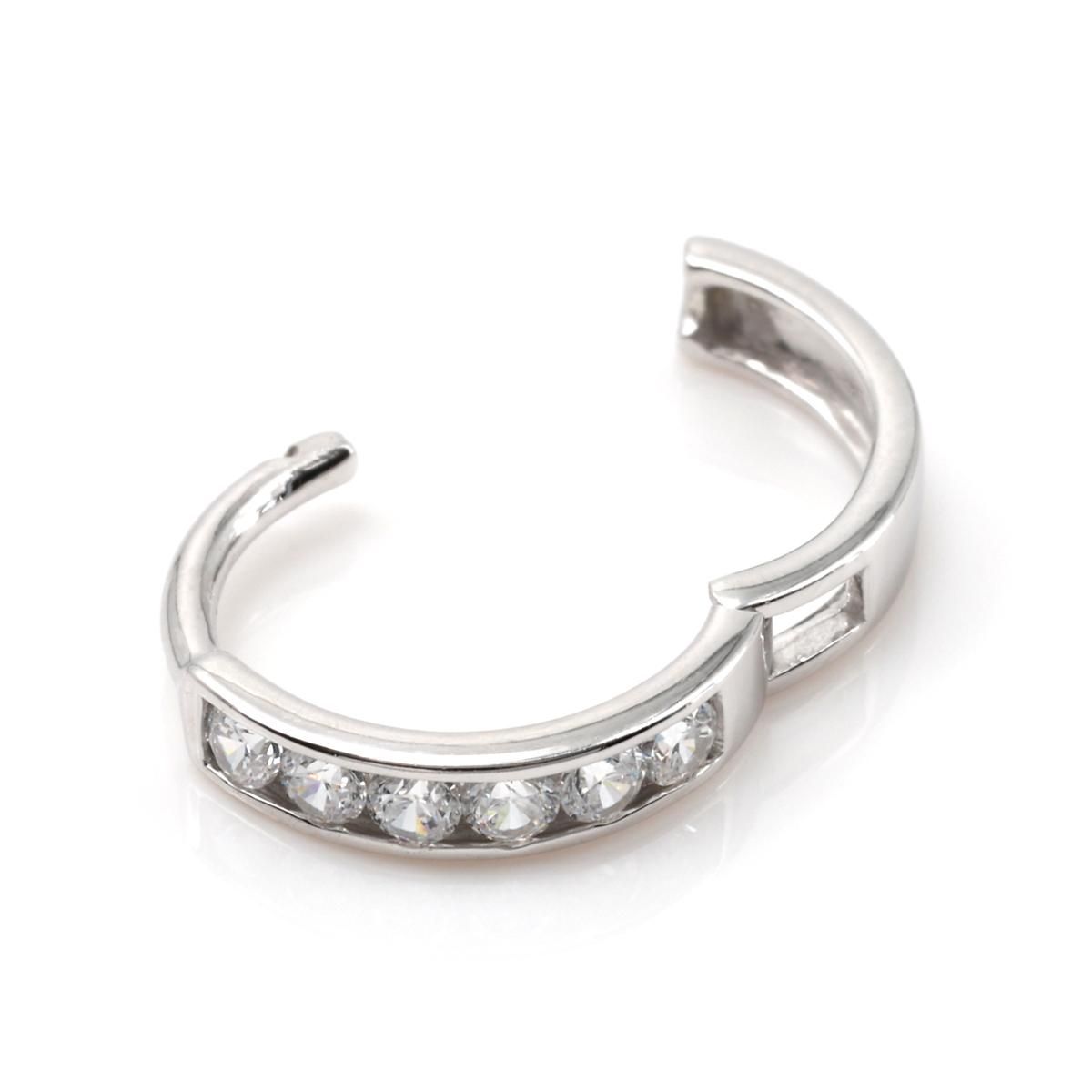 ラウンドカットを施したジルコニアを1列セットしたフープピアス。シンプルなデザインで男女共にご着用いただけます。