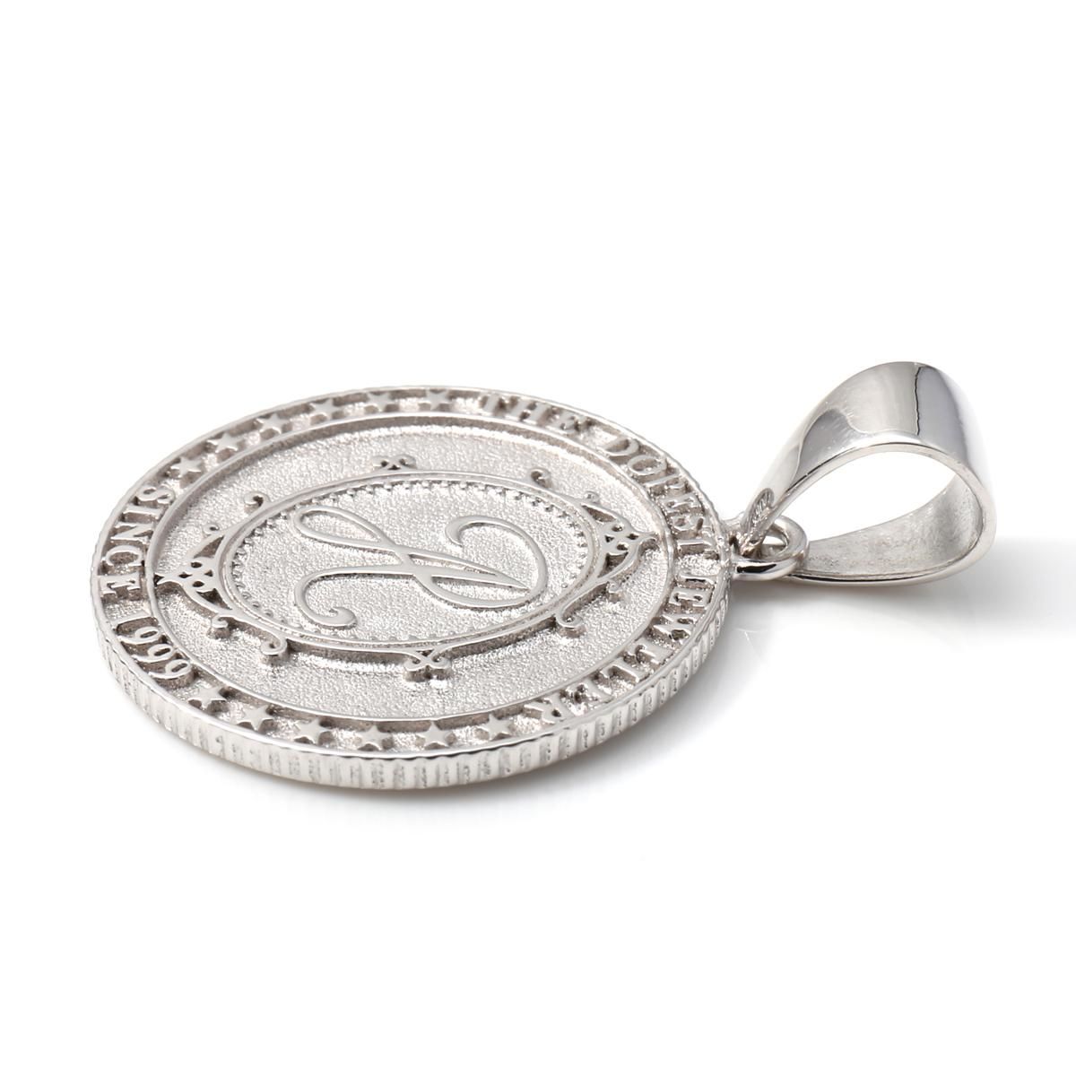 アヴァランチオリジナルロゴを中央にセットしたメダルデザインのペンダント。外周には"THE DOPEST JEWELER"、"SINCE 1999"とスターデザインが刻まれています。裏面にもロゴが刻印され、サイドには本物のメダルの様なギザギザをデザインした、細かい部分にまでこだわったジュエリーになっています。ベーシックなメダル型なので、どんなファッションにも合わせられるペンダントです。