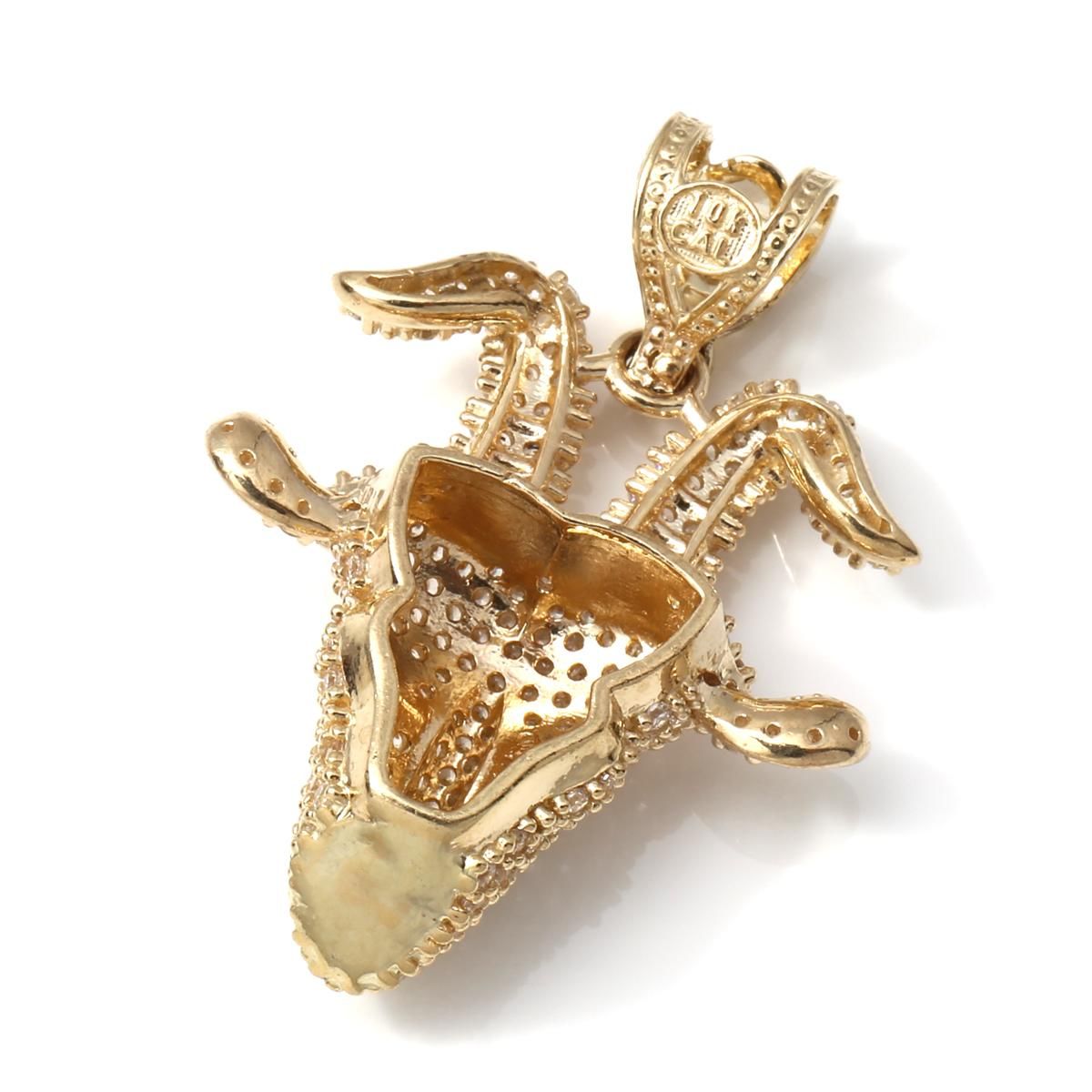 全面に隙間なくジルコニアを敷き詰めたヤギモチーフのペンダント。ヤギは英語でGOATですが、スラングで史上最高という意味を持つG.O.A.T(Greatest of All Time)の意味も持ち合わせたペンダントです。