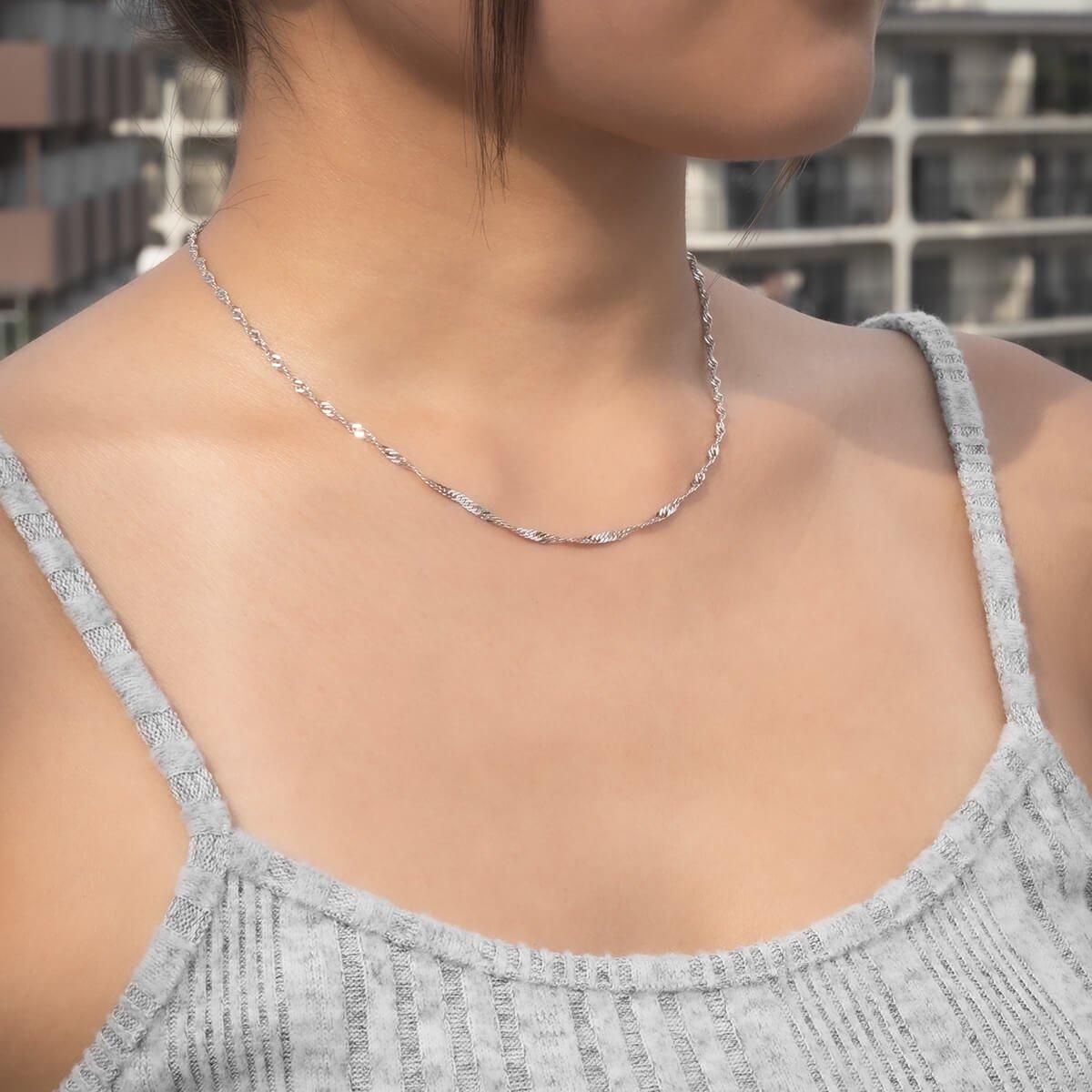 10K ホワイトゴールド スクリューネックレス 幅2mm 40cm-55cm KKP6069