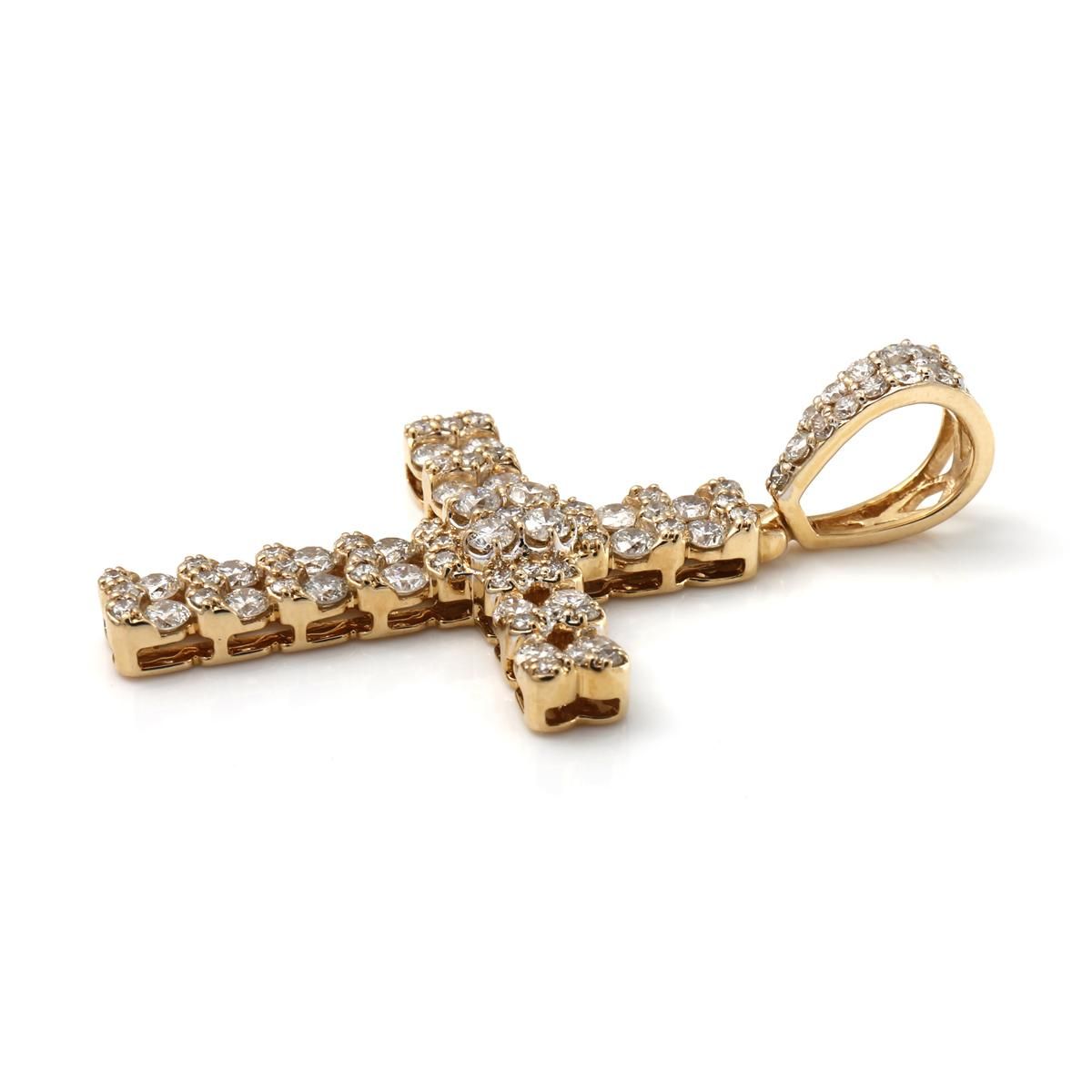 定番のクロスデザインペンダント。異なる大きさのダイヤモンドをセットしており、綺麗な輝きを放つデザインです。ボリューム満点でインパクトが強く、見る人を惹きつけます。