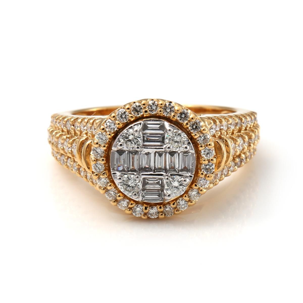 ダイヤモンドを施した10Kのイエローゴールドリング。2種類の異なるカットのダイヤモンドが施されており、強い輝きを放つ逸品です。サイドから見るボリュームも満点です。