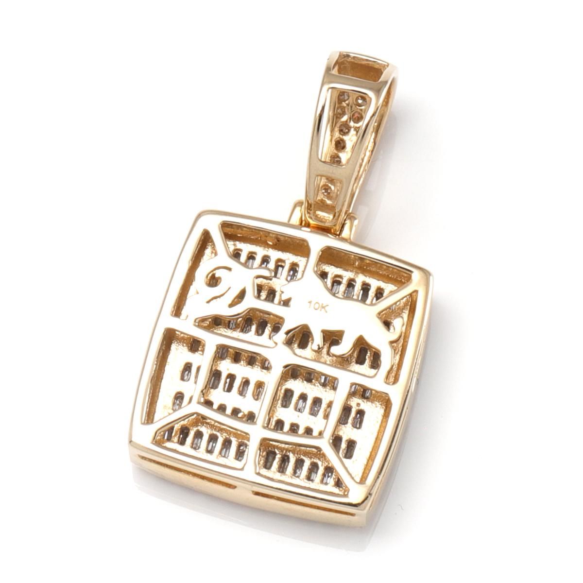 スクエアデザインのイエローゴールドペンダント。隙間なく敷き詰めたダイヤモンドが眩い輝きを放ちます。