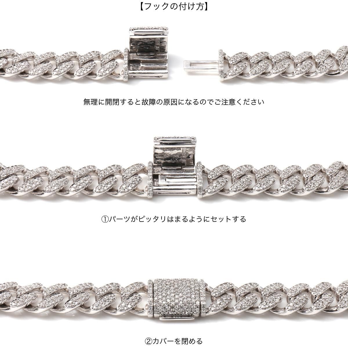 ダイヤモンド 14K ホワイトゴールド マイアミブレスレット 幅7mm 20cm