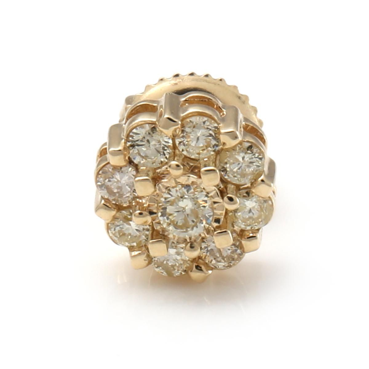 ダイヤモンドを隙間なく施した10Kゴールドピアス。中央を囲うようにダイヤモンドをセッティングしている為、様々な角度から輝きを放ちます。ボリュームと高級感のあるデザインが目を惹きます。