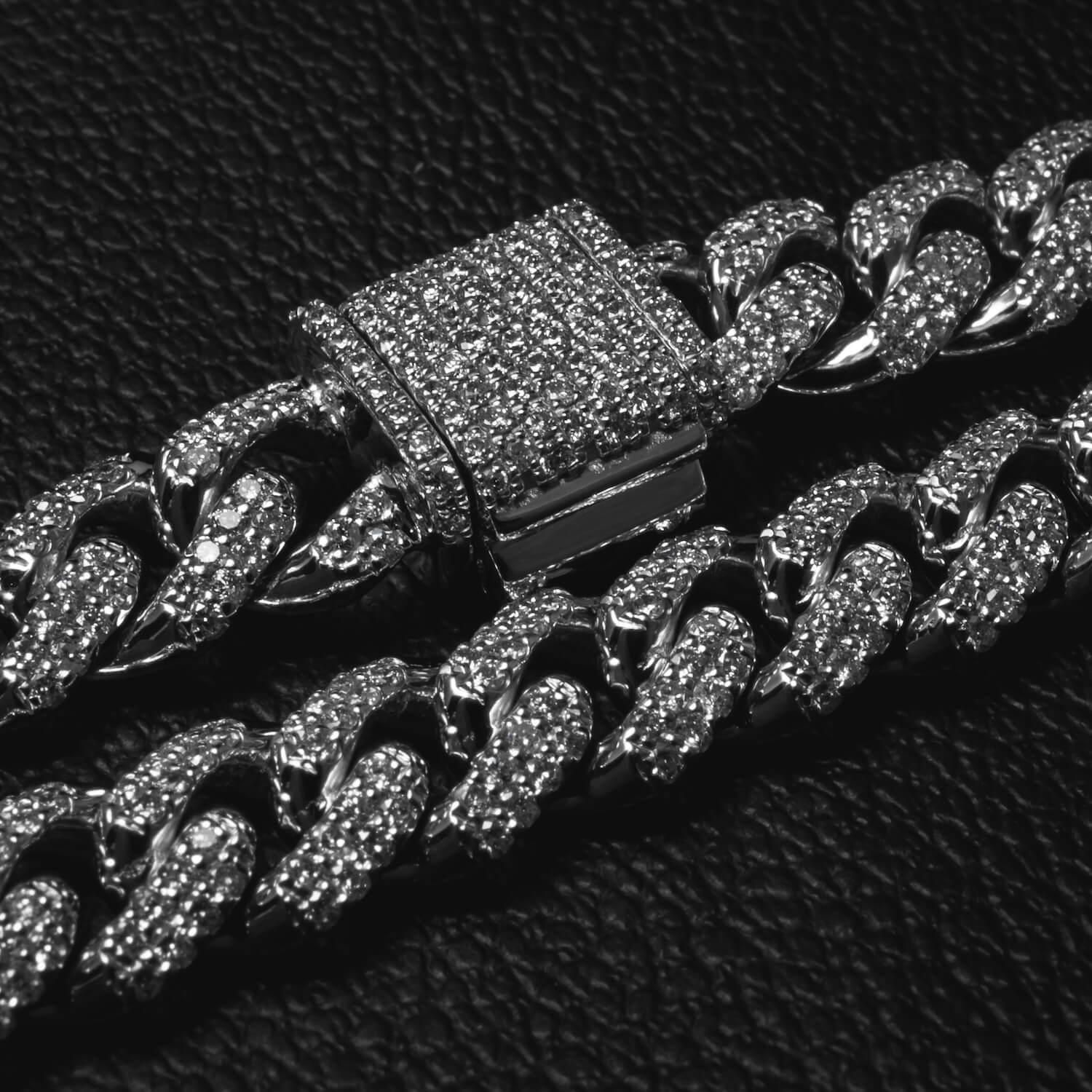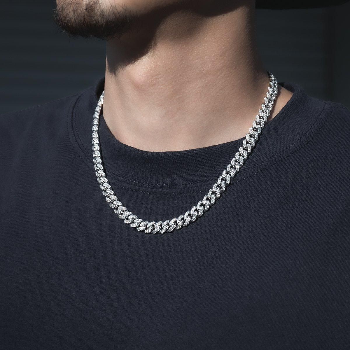 アメリカンジュエリー王道デザインのマイアミネックレス。シンプルでありながらボリュームもあるデザインは、どんなファッションにも相性抜群です。アメリカでは定番のデザインですが、日本ではなかなか手に入らないことも魅力のひとつです。さらにこちらのネックレスは8.82ctのダイヤモンドを表面全体にセットした、トップアーティストが着けているマイアミネックレスにも引けを取らない圧巻のアヴァランチオリジナルマイアミネックレスです。