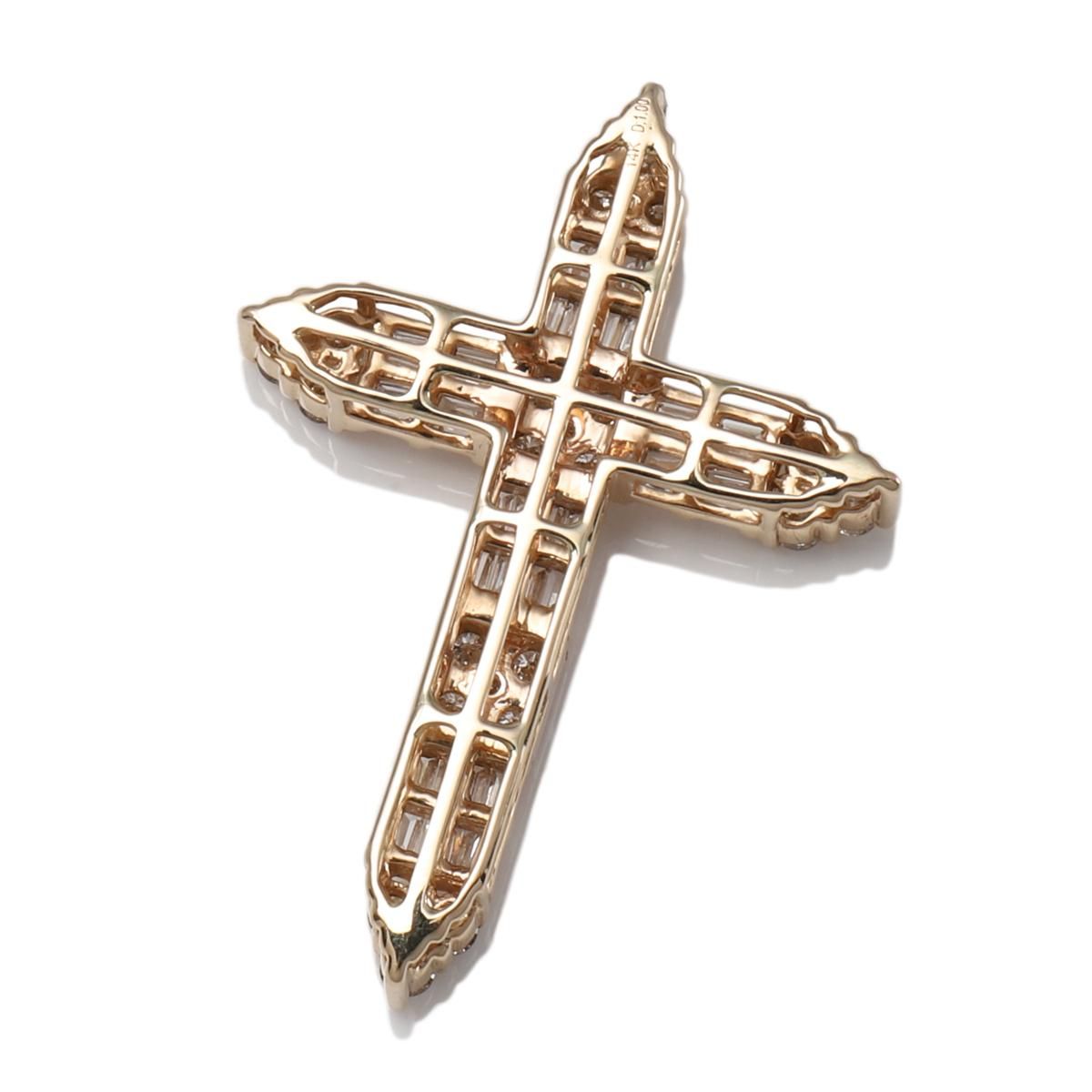 定番のクロスデザインペンダント。表面にラウンドカットとバゲットカットの2種類のダイヤモンドをセッティングしており、インパクトが強く見る人を惹きつけます。