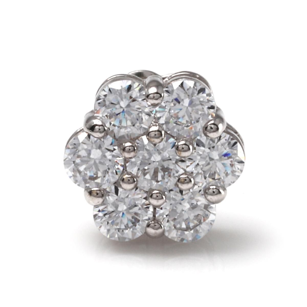 花房のようにジルコニアをセットした人気のクラスターピアス。7石のジルコニアがラグジュアリーに輝き、ボリュームのある耳元を演出します。多くの海外アーティストも着用している注目のピアスです。