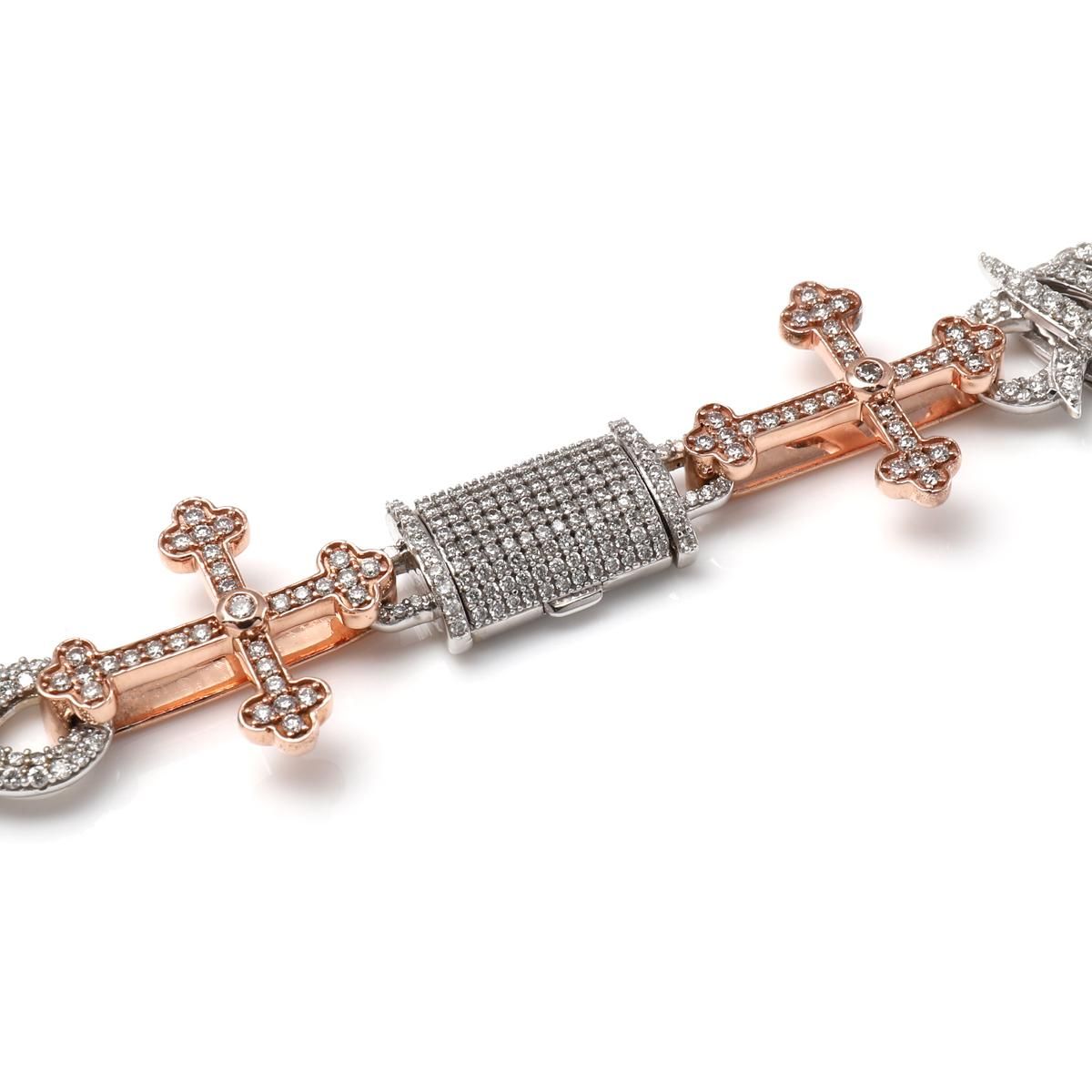 クロスデザイン、有刺鉄線デザイン、インフィニティデザインを組み合わせたネックレス。全面にセットした10.00ctものダイヤモンドが美しい輝きを放ちます。ホワイトゴールドとローズゴールドのコンビネーションが華やかさを演出します。トップアーティストが着けているネックレスにも引けを取らない圧巻のデザインです。このネックレス1本での着用はもちろん、他のネックレスとのレイヤーコーデにもオススメです。