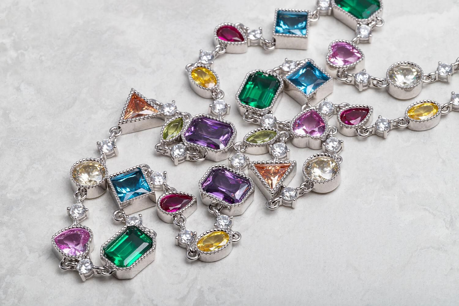 カラフルなジルコニアが煌めく、アヴァランチオリジナルのシルバーネックレスです。