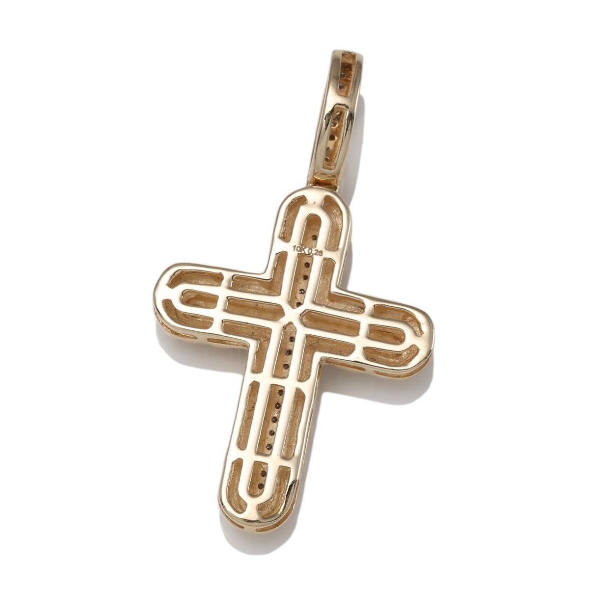 デザイン性の高いダイヤモンドクロスペンダント。表面にダイヤモンドをセットし、縁には凹凸のあるを施したイエローゴールドの色味とダイヤモンドの輝きを生かしたスタイリッシュなデザインです。