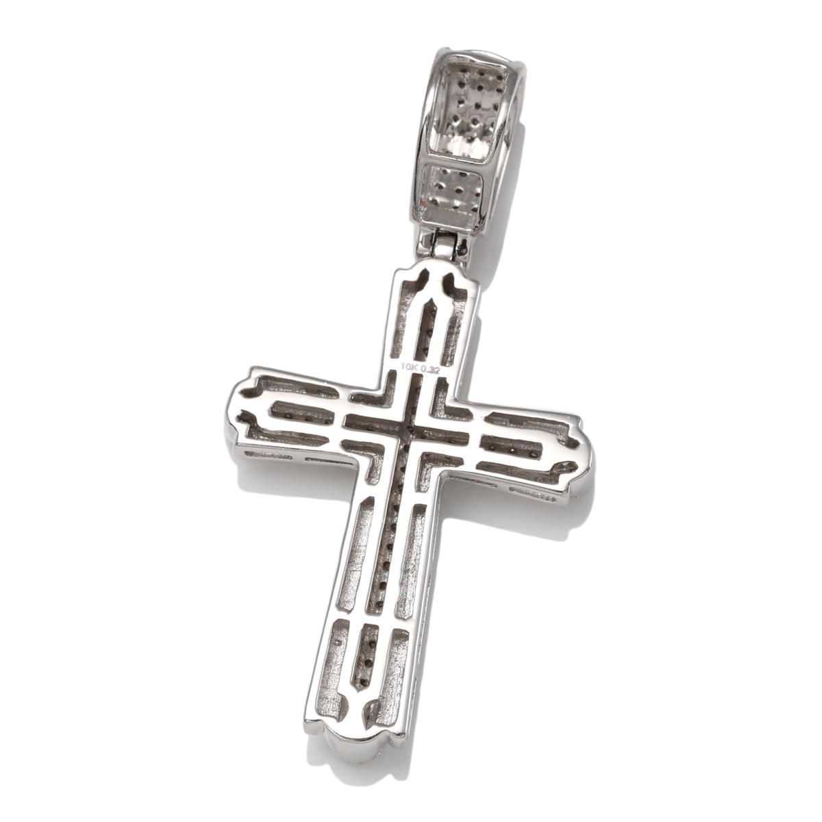 表面に三列ダイヤモンドをセットしたクロスペンダント。縁のホワイトゴールドの色味とダイヤモンドの輝きを生かしたスタイリッシュなデザインが存在感を放ちます。どんなスタイルにも合わせやすいオススメの逸品です。