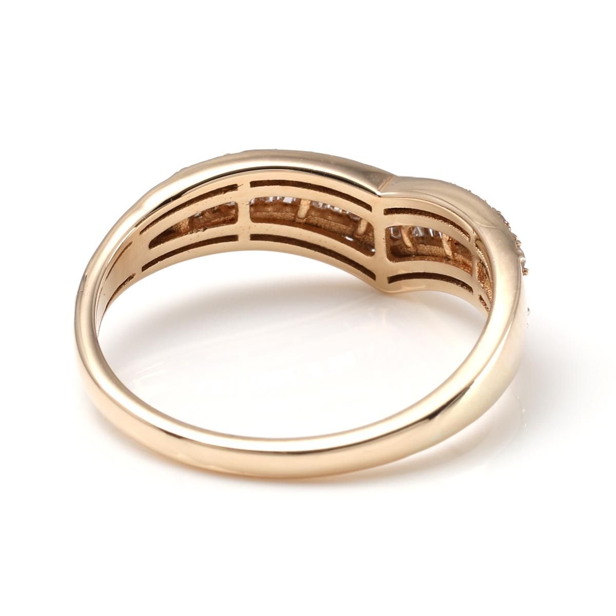 ダイヤモンドを隙間なく敷き詰めたイエローゴールドリング。交互にセットしたラウンドカットとバゲットカットの2種類のダイヤモンドが上品な輝きを放ち、高級感溢れるリングに仕上がっております。V字のフォルムが美しいデザインです。