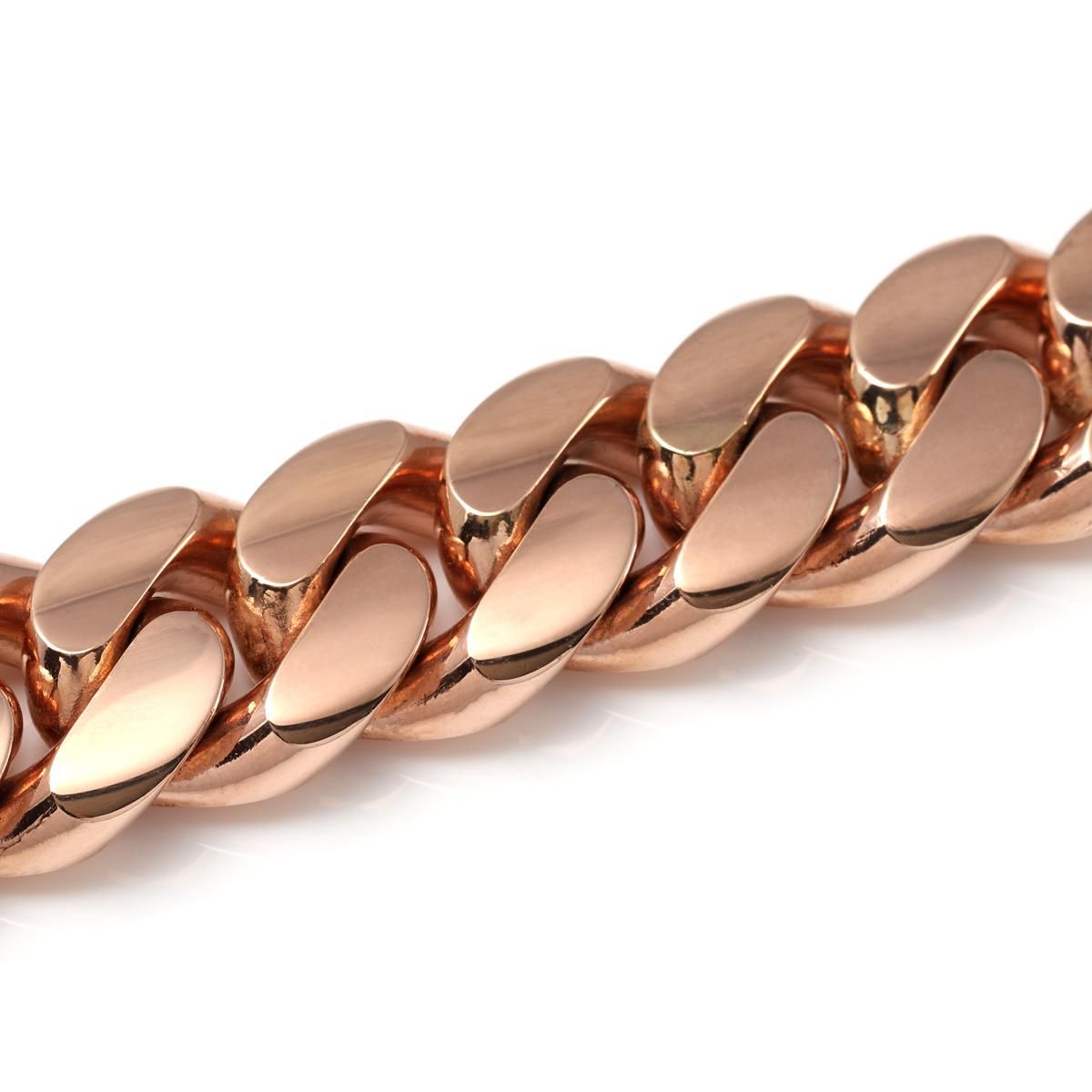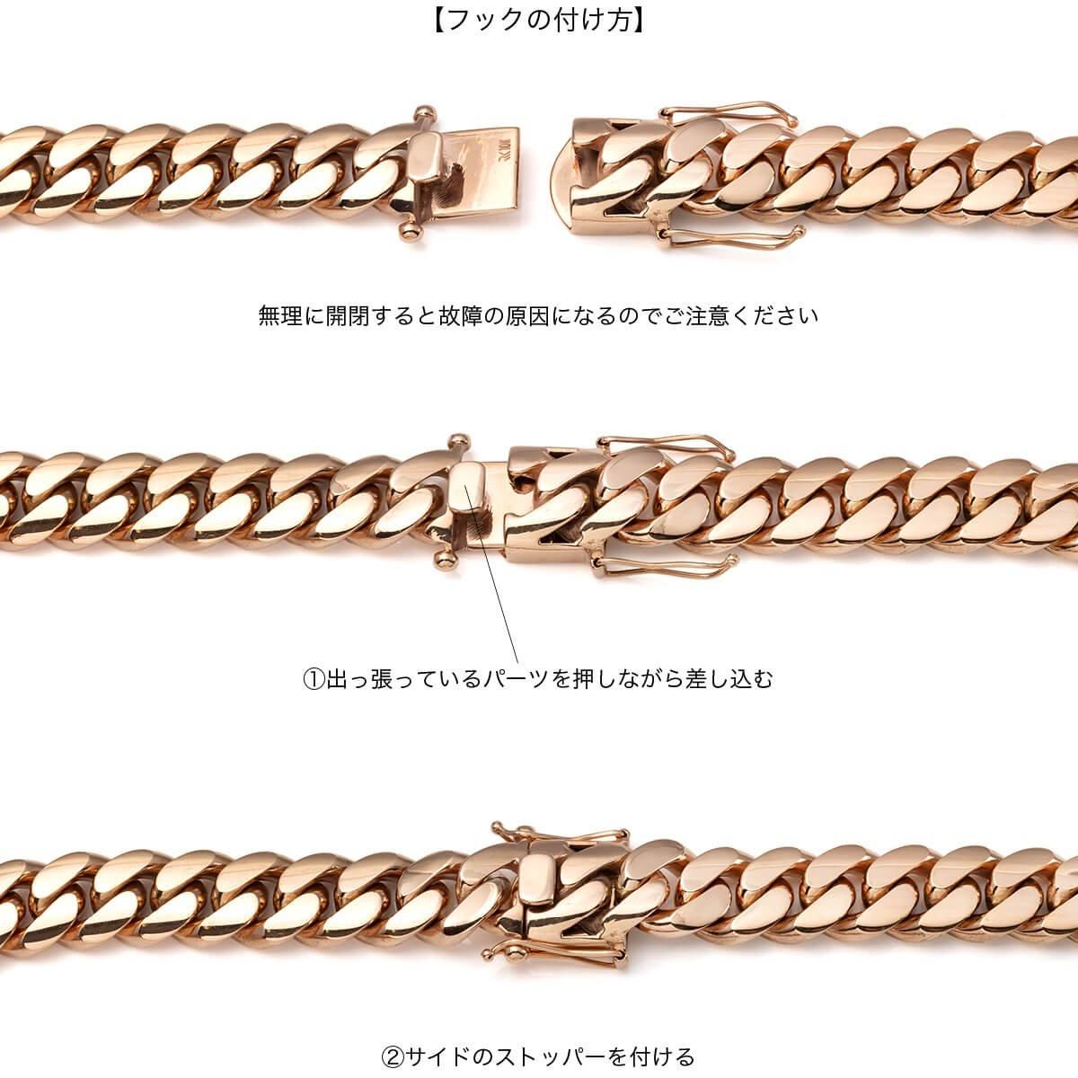 アメリカンジュエリー王道デザインのマイアミネックレス。シンプルでありながらボリュームもあるデザインは、様々なスタイリングとの相性が良く、著名人やアーティストに最も人気のあるデザインです。マイアミネックレスならではのボリューム感に加えて、ローズゴールドの輝きがラグジュアリーな雰囲気を醸し出します。