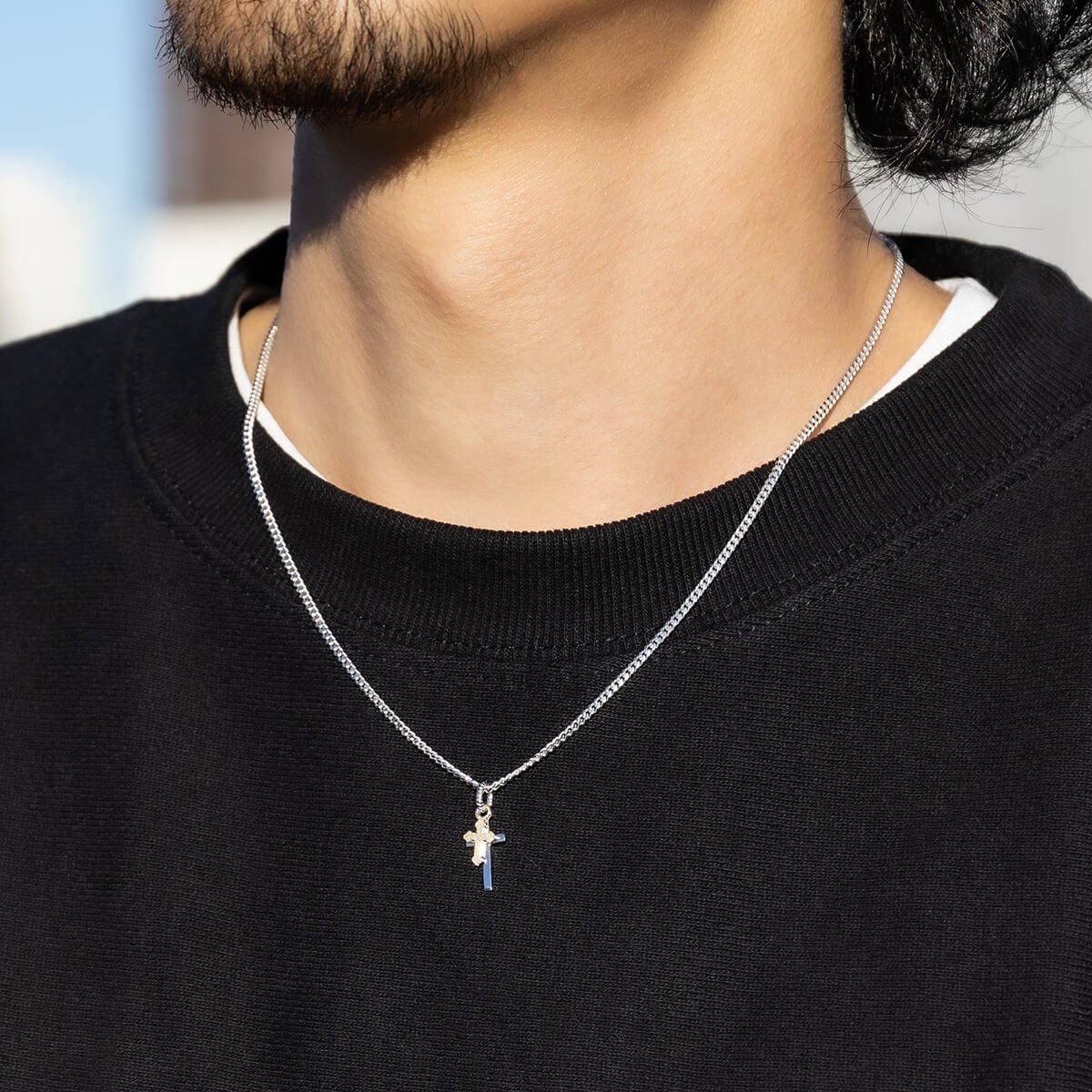 アヴァランチオリジナルのクロスペンダント。シルバーのクロスは艶やかで光沢のあるハイポリッシュ加工を施し、イエローゴールドのクロスはきめ細かい凹凸が特徴で煌びやかの輝くスターダスト加工を施しています。シルバーとイエローゴールド二種類の輝きを存分に楽しめるデザインです。