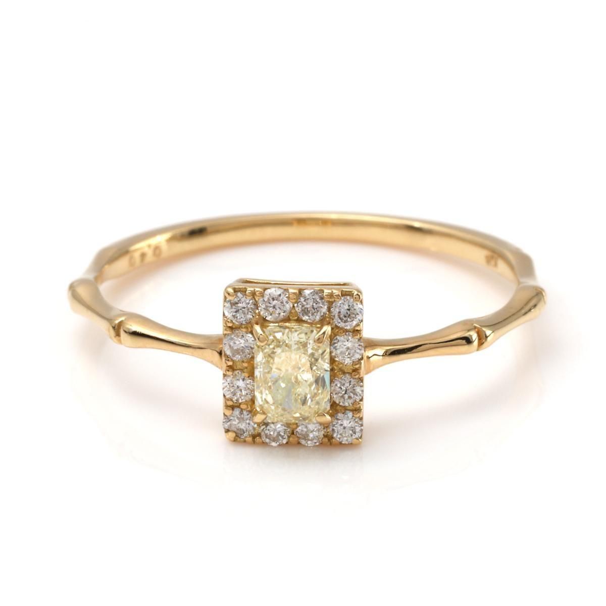 ベーシックなスクエアデザインでどの指にも合わせやすいダイヤモンドリング。サイドには、ほんの数ヶ月で大きく成長していくことから縁起が良いモチーフと言われるバンブーデザインを施しています。