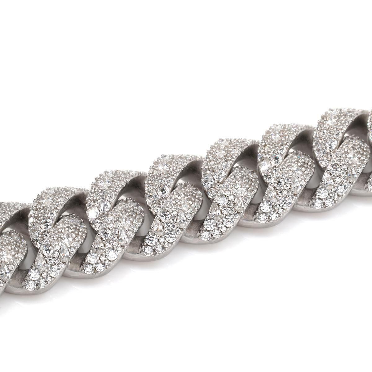 圧倒的な存在感を放つジルコニアをモザイクセッティングしたマイアミブレスレットが登場。大小様々なサイズのジルコニアの輝きが美しく、重厚感も申し分のないオススメのブレスレットです。フック部分までジルコニアを敷き詰めた贅沢なデザインに仕上がっています。