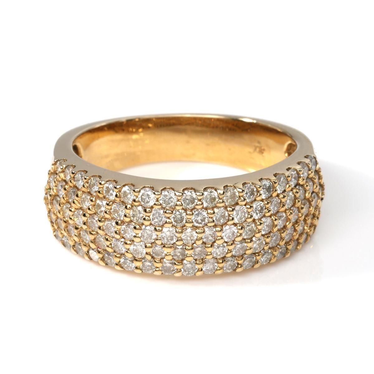トータル1.65カラットのダイヤモンドをセットしたイエローゴールドリング。贅沢に敷き詰めたラウンドカットのダイヤモンドがラグジュアリーな輝きを放ちます。迫力に魅了されること間違いなしの一点になります。