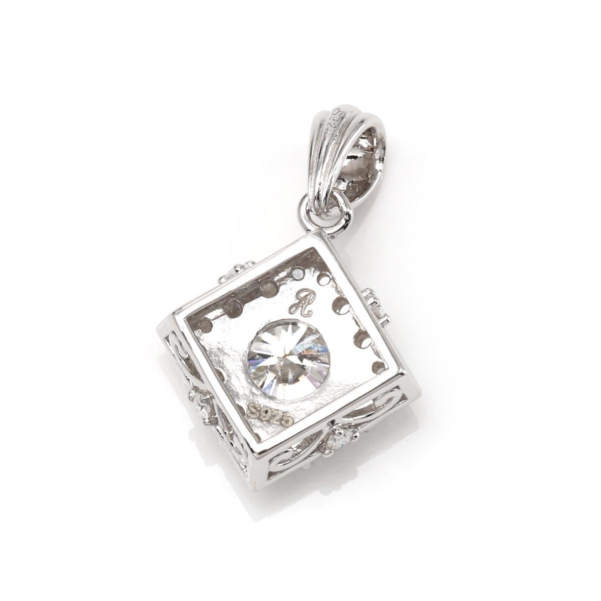 モアサナイトをリバースセットしたシンプルデザインのペンダント。中央に大きめのモアサナイトをセットし、その周りを囲うようにリバースセットを施した、通常のセットとは異なる輝きを放ちます。サイドからの見た目にも拘ったデザイン性に長けたペンダントです。