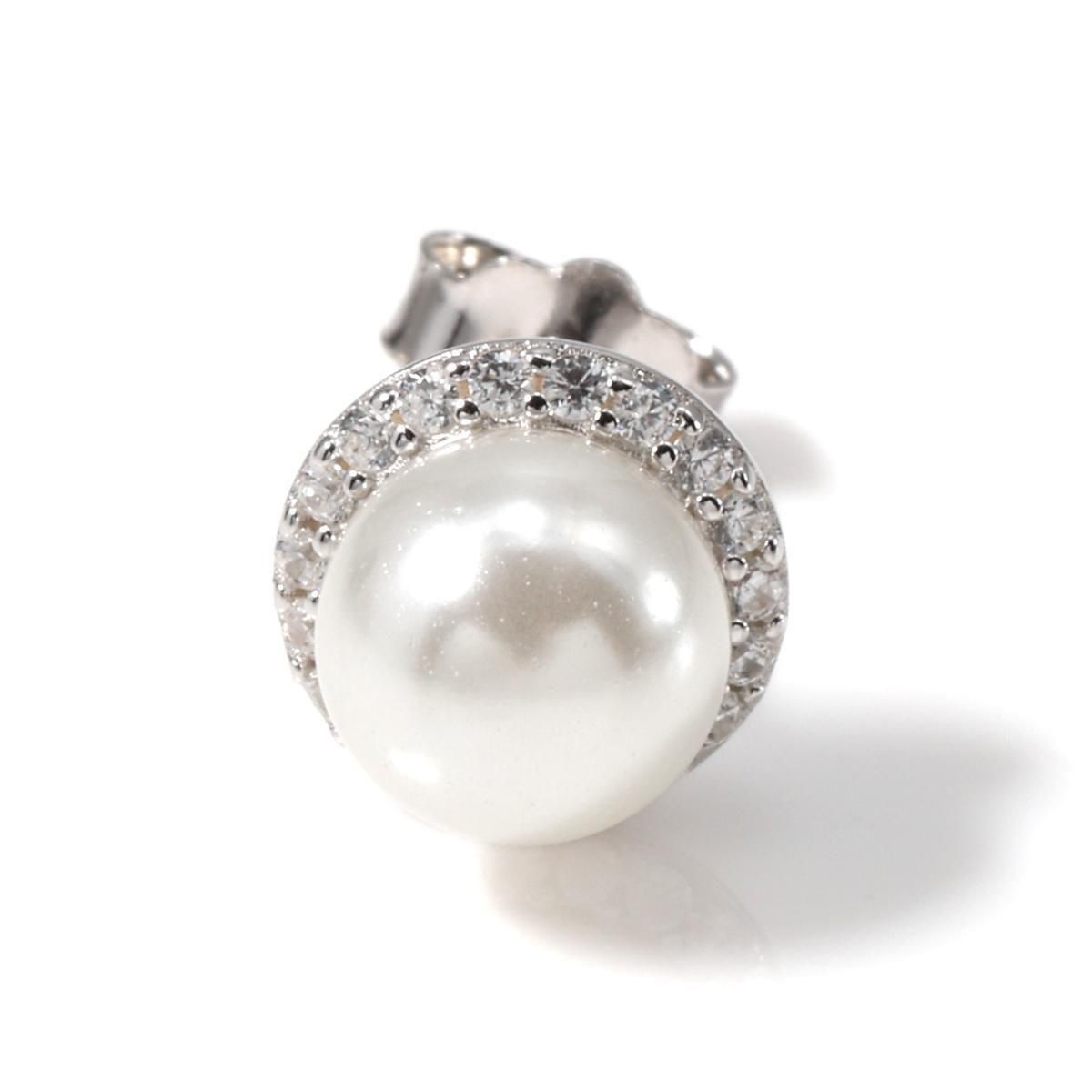 シェルパールとジルコニアをセットしたシルバーピアス。パール特有の艶やかで柔らかな輝きとジルコニアの煌びやかな輝きのコントラストが美しいデザインです。