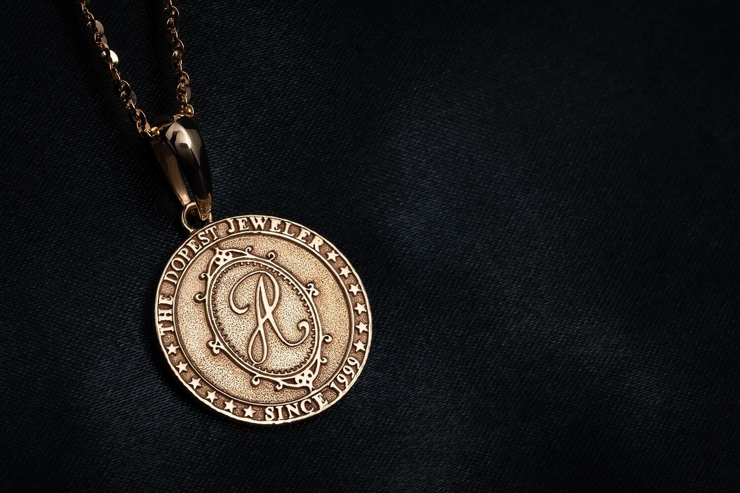 アヴァランチオリジナルロゴを中央にセットしたメダルデザインのペンダント。外周には"THE DOPEST JEWELER"、"SINCE 1999"とスターデザインが刻まれています。裏面にもロゴが刻印され、サイドには本物のメダルの様なギザギザをデザインした、細かい部分にまでこだわったジュエリーになっています。ベーシックなメダル型なので、どんなファッションにも合わせられるペンダントです。