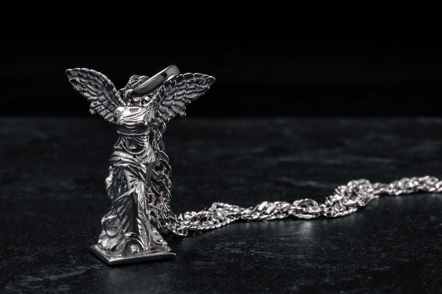 古代ギリシャ彫刻「サモトラケのニケ」の像をモチーフにした、アヴァランチオリジナルペンダントです。