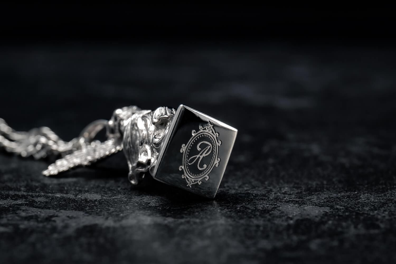 彫刻特有の質感やディテールの細部まで忠実に立体で再現した、存在感のある芸術的なペンダントです。
